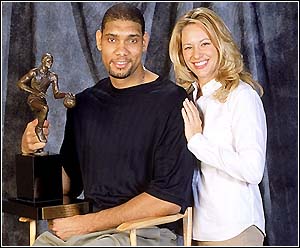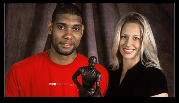 邓肯出了名的专一,不光对球队专一,对老婆也专一,可惜邓肯的命不好,找了个水性杨花的妻子艾米。