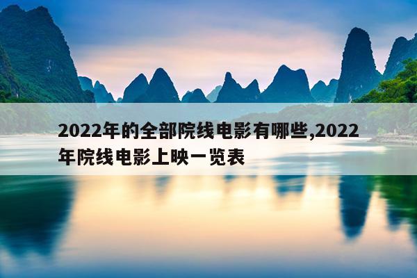2022年上映的电影有哪些?2022年上映电影有《盲战》、《这个杀手不太冷静》、《四海》、《倚天屠龙记之九阳神功》、《奇迹·笨小孩》。 1、《盲战》 《盲战》由刘朝晖担任总策划,颢东、张志鹏担任总制片人,霍穗强执导,安志杰领衔主演,杨杏、王寒阳主演。该片于2022年5月1日在爱奇艺上线。 该片讲述了盲人警察东谷为救爱女,单挑黑帮家族、遭遇宿敌报复,由此展开一段生死较量的故事。 2、《这个杀手不太冷静》 《这个杀手不太冷静》由邢文雄自编自导,马丽、魏翔领衔主演,陈明昊、周大勇、黄才伦主演,艾伦友情出演,于2022年2月1日在中国大陆上映。 该片根据日本喜剧电影《魔幻时刻》改编,讲述了龙套演员魏成功为了实现自己想要“饰演一次男主角”的梦想,在得到了女演员米兰的“赏识”后,意外陷入了一个用戏剧编织出的“局中局”里的故事。 3、《四海》 《四海》由韩寒执导,刘昊然、刘浩存、沈腾、尹正、乔杉、周奇、王彦霖领衔主演,黄晓明、张宥浩、陈小春、万梓良、吴彦姝、赵子琪特别出演,冯绍峰友情出演。 该片讲述了擅长摩托车特技的少年吴仁耀与他多年未见的父亲吴仁腾再度相逢,此时女孩周欢颂和她哥哥周欢歌的车队又意外闯入他们的生活,他们终将名扬四海还是四海为家的故事。 4、《倚天屠龙记之九阳神功》 《倚天屠龙记之九阳神功》由王晶、姜国民联合执导,甄子丹特别演出,古天乐、林峯、文咏珊、云千千、邱意浓、徐锦江、方中信、黄浩然等主演。该片于2022年1月31日全网上线。 该片改编自金庸创作的小说《倚天屠龙记》,讲述了武林六大门派为了倚天剑和屠龙刀争个你死我活,而武学奇才张无忌引领明教对抗这些名门正派的故事。 5、《奇迹·笨小孩》 《奇迹·笨小孩》由文牧野执导,宁浩监制,易烊千玺领衔主演,田雨、陈哈琳、齐溪、公磊、许君聪、王宁、黄尧、巩金国主演,王传君特别出演,章宇、杨新鸣友情出演,于2022年2月1日在中国大陆上映。 该片讲述了一个20岁少年景浩为了让妹妹景彤过上更好的生活,与一群平凡人组队创业,共同追逐幸福的故事。 2022年上映电影有哪些?截止2022年11月19日还未上映:《神秘海域》、《闪电侠》、《碟中谍7》、《造梦之家》、《黑亚当》、《财富行动:战争之街》、《侏罗纪世界3:统治》、《壮志凌云2:独行侠》、《奇异博士2:疯狂多元宇宙》、《新蝙蝠侠》。 1、1、《神秘海域》主演:汤姆·赫兰德、安东尼奥·班德拉斯。上映日期:2022年2月18日(美国)。 2、2、《闪电侠》主演:埃兹拉·米勒、迈克尔·基顿、本·阿弗莱克。上映日期:2022年11月4日(美国)。 3、3、《碟中谍7》主演:汤姆·克鲁斯、凡妮莎·柯比。上映日期:2022年9月30日(美国)。 4、4、《造梦之家》主演:米歇尔·威廉姆斯、塞斯·罗根、保罗·达诺。上映时间:2022年11月23日(美国),上映时间:2022年9月10日(多伦多电影节)。 5、5、《黑亚当》主演:道恩·强森、皮尔斯·布鲁斯南、莎拉·夏希。上映时间:20022年7月29日(美国)。 6、6、《财富行动:战争之街》主演:杰森·斯坦森、休·格兰特、乔什·哈奈特。上映时间:2022年3月18日(美国)。 7、7、《侏罗纪世界3:统治》主演:克里斯·帕拉特、布莱丝·达拉斯·霍华德。上映时间:2002年6月10日(美国)。 8、8、《壮志凌云2:独行侠》主演:汤姆·克鲁斯、詹妮弗·康纳利。上映时间:2022年5月27日(美国)。 9、9、《奇异博士2:疯狂多元宇宙》主演:本尼迪克特·康伯巴奇、伊丽莎白·奥尔森。上映时间:2022年5月6日(美国)。 10、10、《新蝙蝠侠》主演:罗伯特·帕丁森、佐伊·克罗维兹、科林·法瑞尔。上映时间:2022年3月4日(美国)。